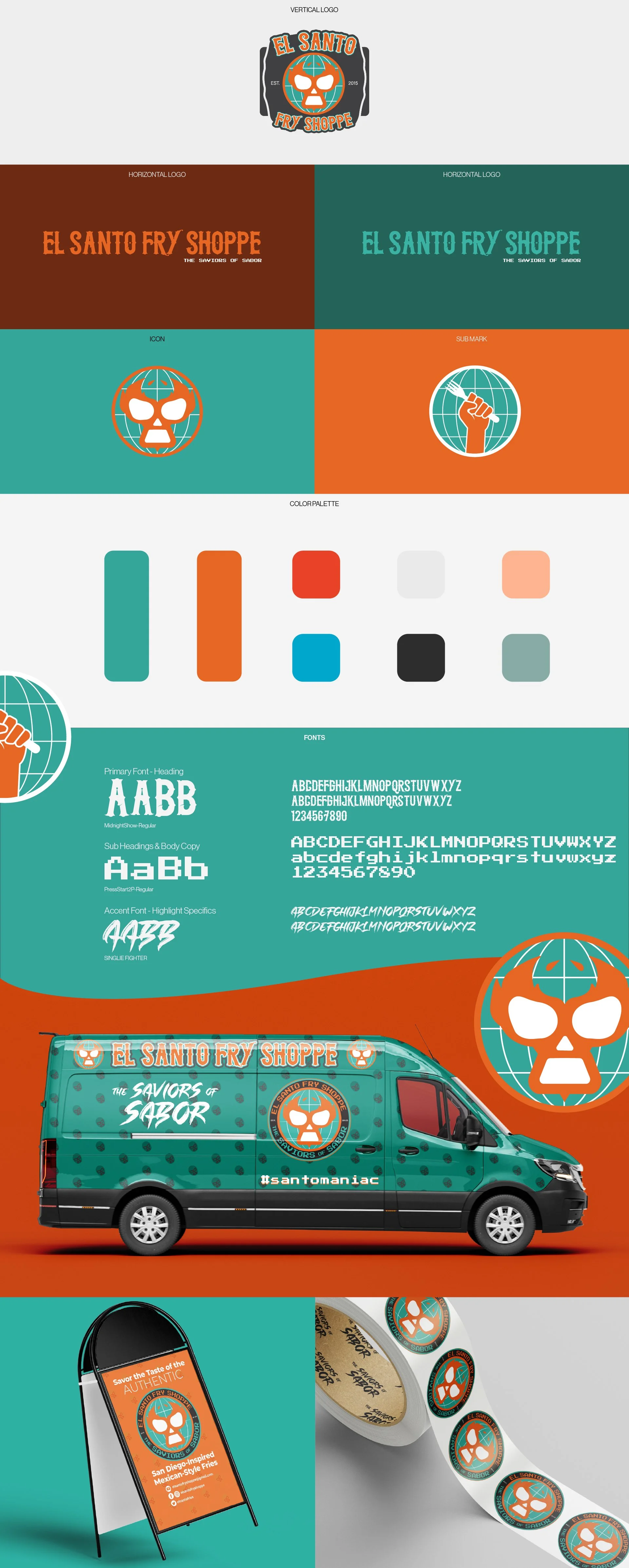 Responsibilities: Create a branding system encompassing client’s specific request of integrating a combination of their favorite cultures; San Diego-style Mexican food and Mexican Lucha Libre wrestling. Selected typeface options, color palette, patterns based off client’s provided inspiration and then later enhanced. Created follow up branding deliverables to increase brand awareness, build brand trust with customers and create an original as well as memorable international experience for the audience.